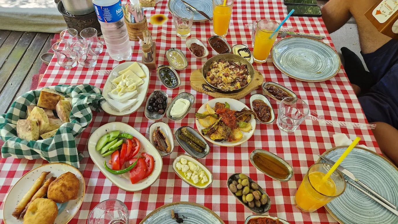 Kirazlı mahallesi merkez sokakta geleneksel köy sofrası. Aydın Kuşadası yolu üzerinde.