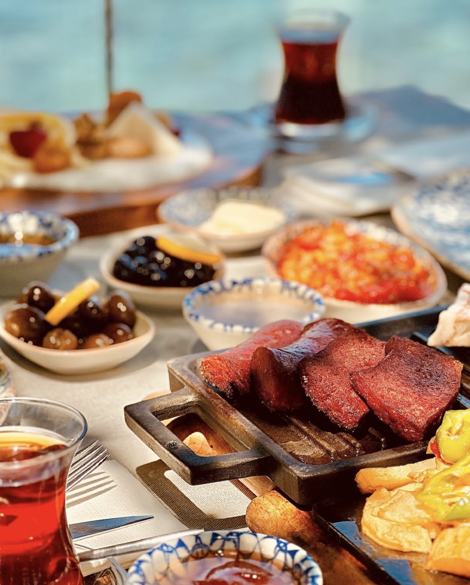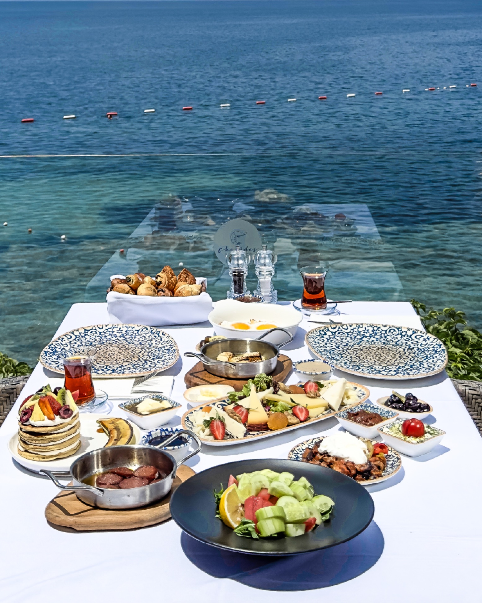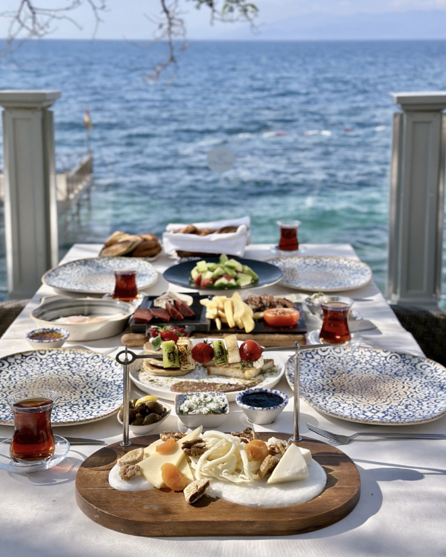 Mükemmel deniz manzarasında organik serpme kahvaltı sunuyor. Balık restoranı olarak organik ürünlerle hizmet veriyor.