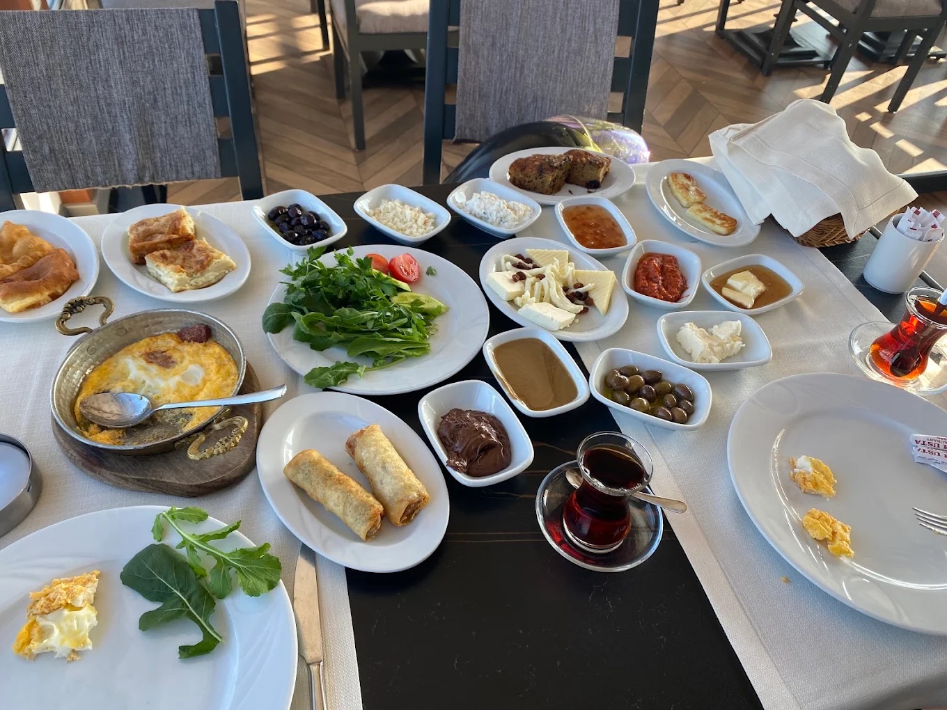 Camikebir'de Mahmut Esat Bozkurt Caddesi'nde geleneksel Türk mutfağı ve kahvaltı.