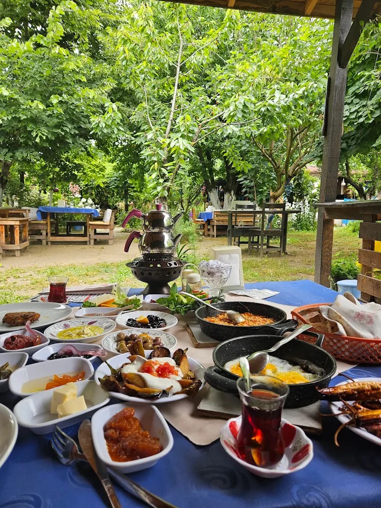 Kirazlı mahallesi yolunda geniş bahçesi ile huzurlu bir kahvaltı deneyimi.