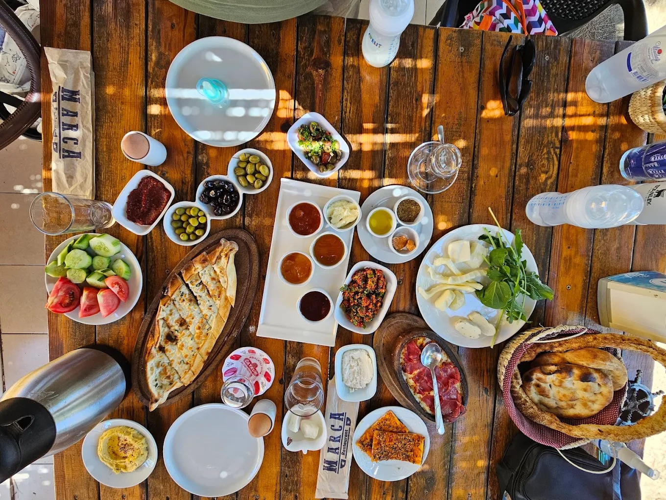 Antakya usulü serpme kahvaltı sunuyor. Doğa içerisinde dağ manzarası eşliğinde yöresel lezzetler.
