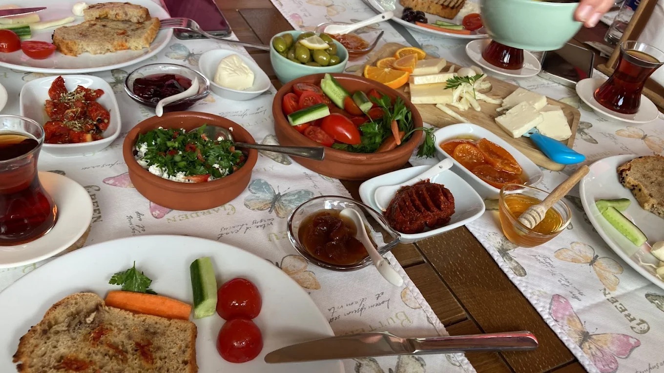 Gökçealan'da Fatma Günhan Sokak'ta doğa ile iç içe kahvaltı ve restoran hizmeti.